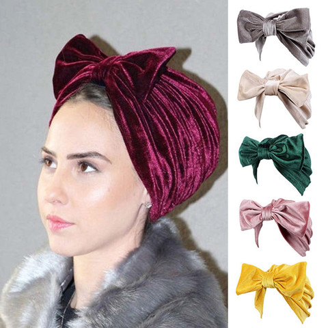 Buy Online Fashion Women Bow Bowknot Hijab Velvet Cap Chemo Hat Headband Muslim Turban Bandanas For Wedding Party Hair Accessories Mujer Alitools