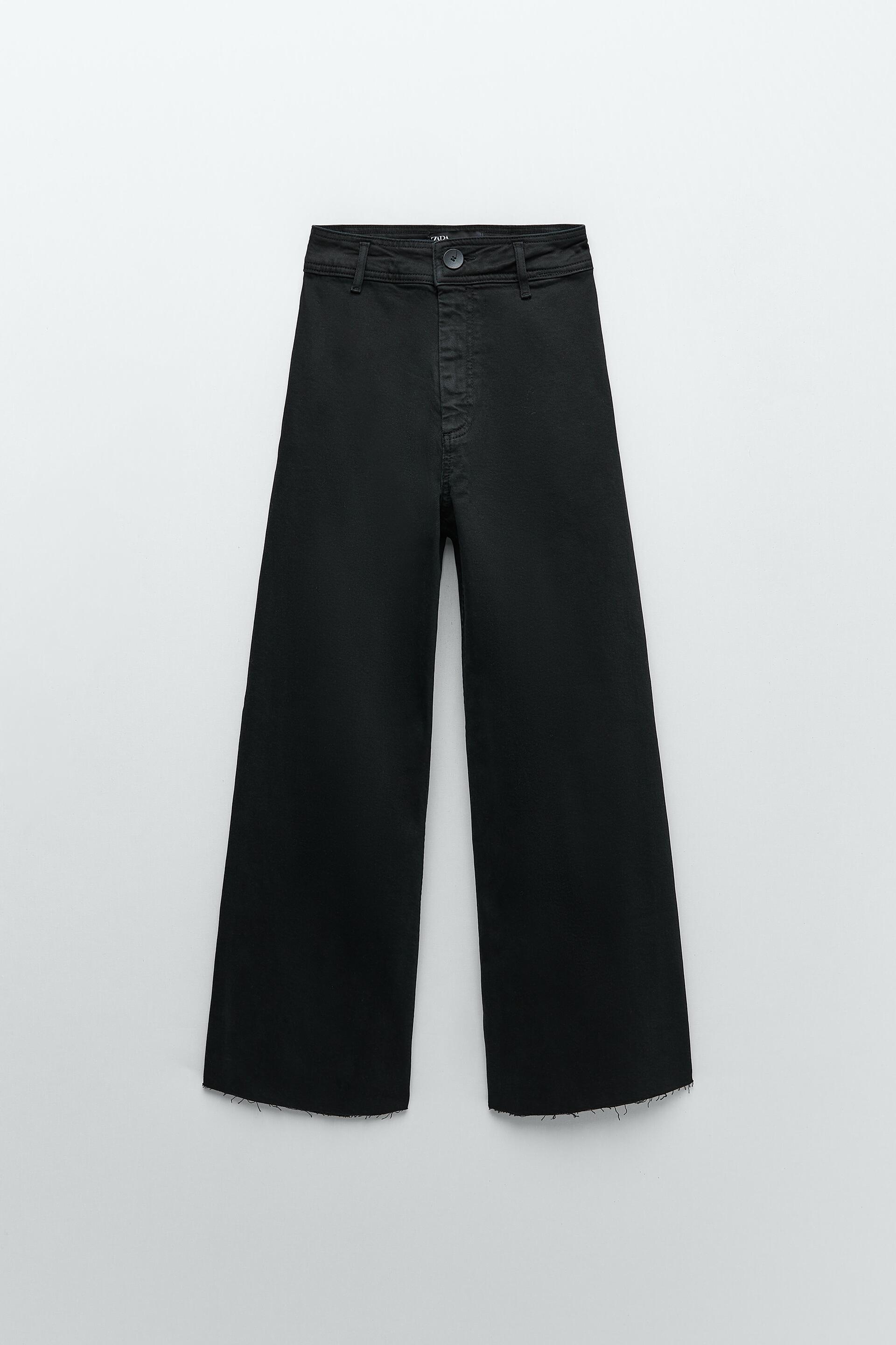 Zara New Zw Premium Marine Straight Wide Leg Jeans Size 40 Uk 12 Ash Black Denim 41 66 Picclick