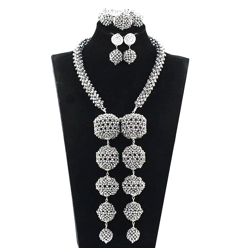 Trendy African Silver Grey Wedding Bridal Beads Jewelry Set Chunky Bib Costume Indian Anniversary Jewelry Set Birthday Qw775 Beaded Jewelry Set Jewelry Setsbridal Beads Aliexpress