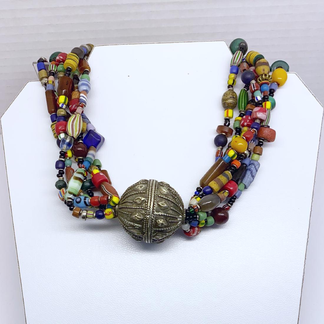 Old African Trade Beads Jewelry Handcrafted Necklace