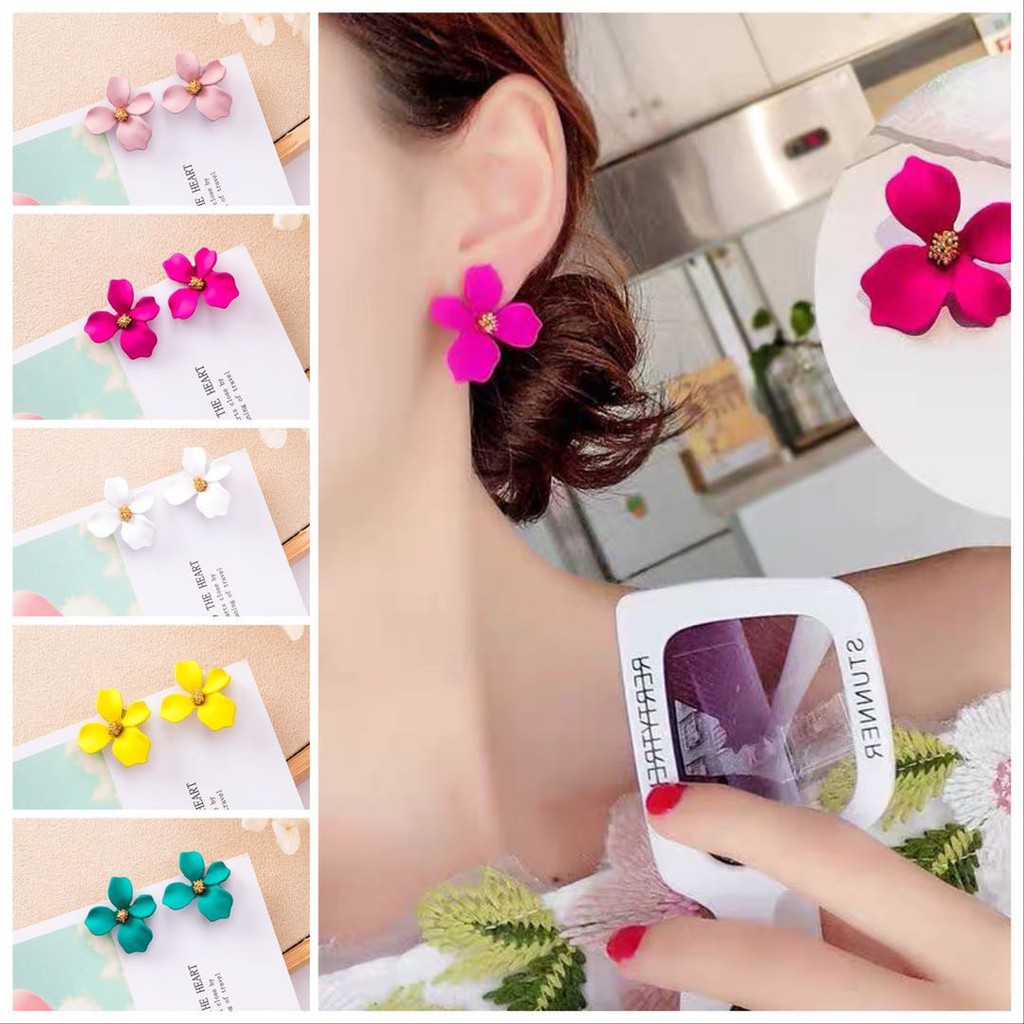 Anting Tusuk Model Kelopak Bunga Warna Warni Ala Korea Untuk Wanita Shopee Indonesia