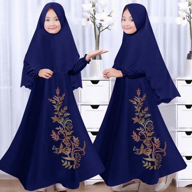 Gamis Anak Perempuan 2021 Modern Moderen Import Murah Syari Muda Terbaru Katun Mewah Baju Pakaian Ori Remaja Gaun Muslim Anak2 Kids Lucu Bagus Baju Muslim Stela Navy Gamis Anak Perempuan Cantik Dan