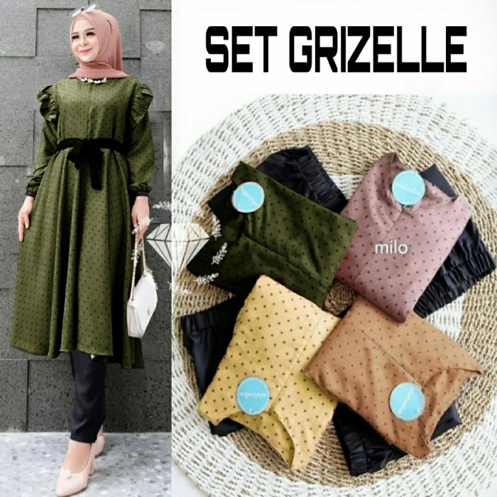 Setelan Polka Grizelle Set Tunik Wanita Terbaru 2021 Bhn Baby Codoray Celana Moscrepe No Pashmina Shopee Indonesia